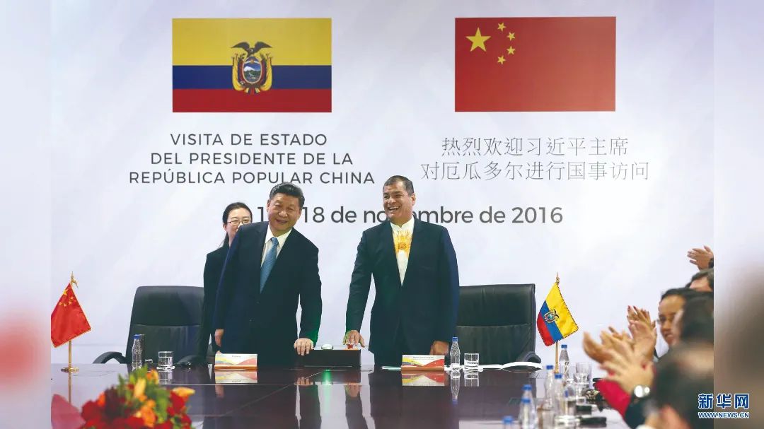 2016年11月18日,國家主席習近平同厄瓜多爾總統(tǒng)科雷亞共同出席辛克雷水電站竣工發(fā)電視頻連線活動。