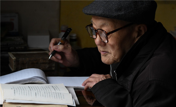 張富清在家看書(shū)學(xué)習(xí)(3月31日攝)。新華社記者 程敏 攝