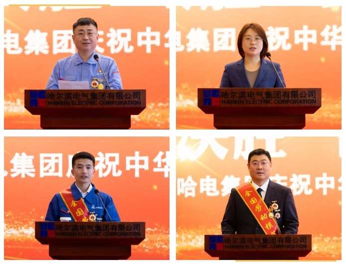黃偉代表哈電集團(tuán)黨委向榮獲2025年“全國勞動模范”稱號的覃大清、關(guān)濤、于海瀛三位同志表示熱烈祝賀,并向公司全體先進(jìn)模范及廣大職工致以崇高敬意。