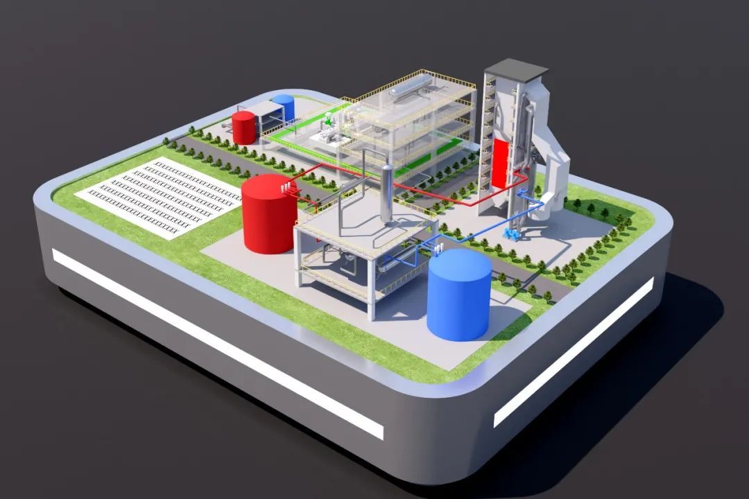 世界首臺(套)應(yīng)用鍋爐耦合煙氣熔鹽儲能項目——國能廊坊熱電350兆瓦機(jī)組煙氣熔鹽儲能示范項目儲熱系統(tǒng)概念圖。