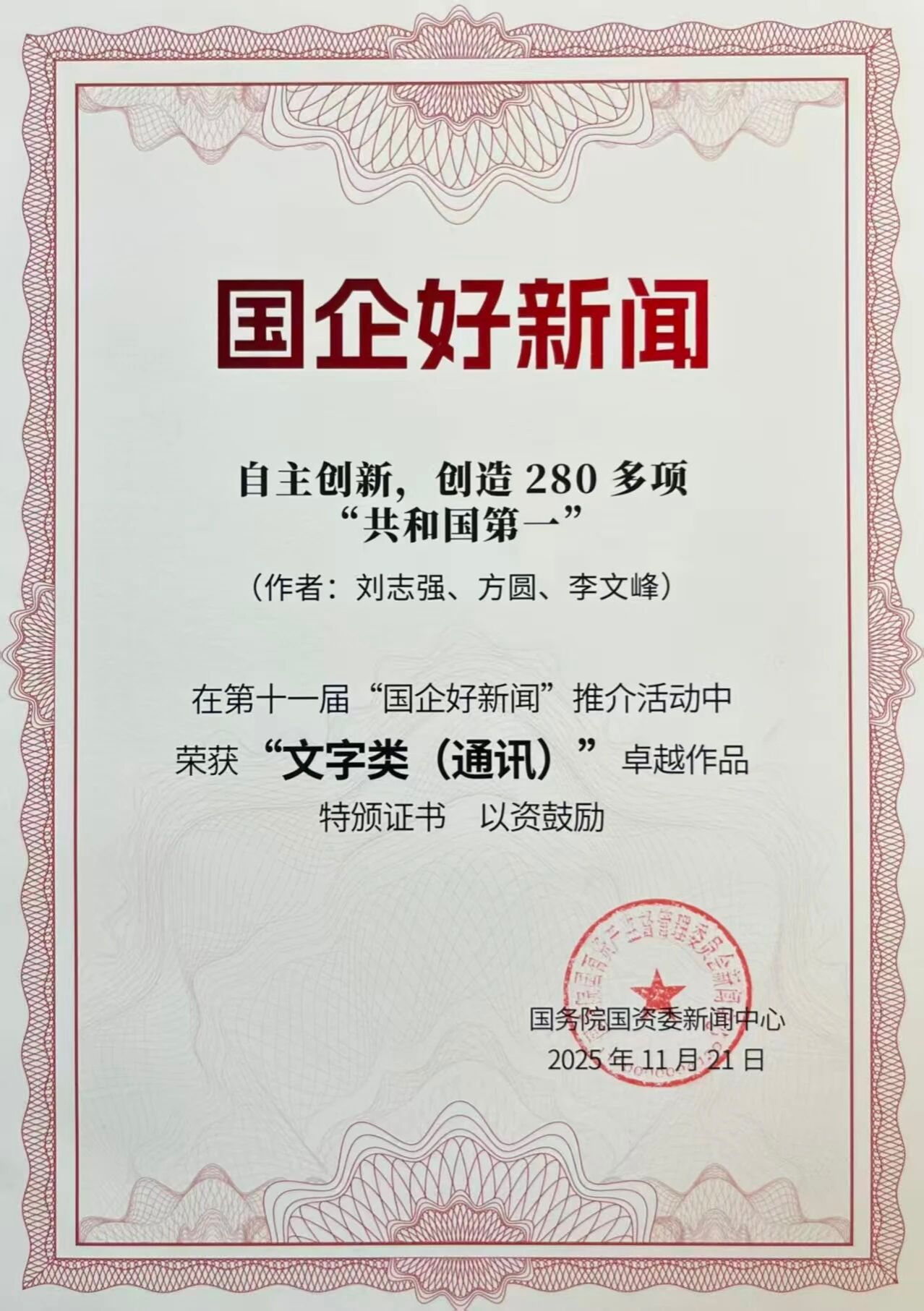 據(jù)了解,本次“國企好新聞”由國務(wù)院國資委宣傳局、中國記協(xié)國內(nèi)部指導(dǎo),國務(wù)院國資委新聞中心主辦,《國資報告》雜志社承辦,共征集作品8138件,邀請96位專家組成獨立的推介委員會,涵蓋政企學(xué)研媒等各行業(yè),保證評選的專業(yè)性、全面性、權(quán)威性。