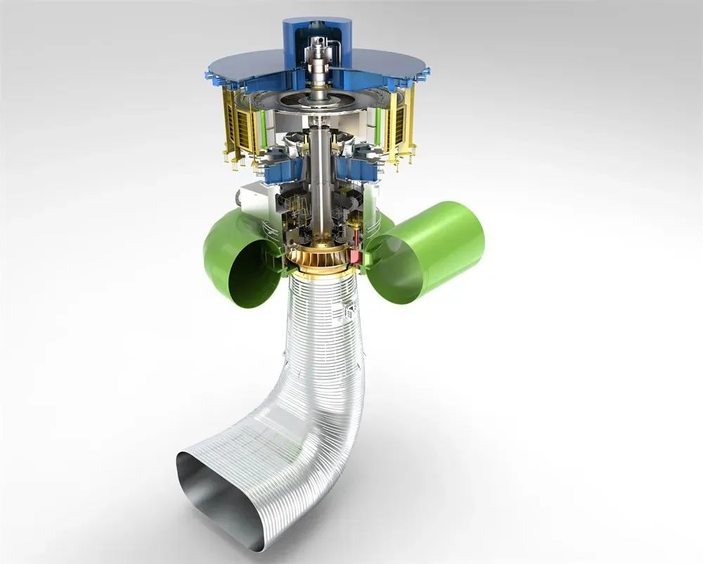 水力模型研發(fā)設(shè)計方面,采用全流道CFD優(yōu)化設(shè)計,成功設(shè)計出滿足高水頭穩(wěn)定性能要求并在低水頭段具有較大超發(fā)能力的長短葉片結(jié)構(gòu)轉(zhuǎn)輪,水輪機最優(yōu)效率96.7%,達到世界巨型水輪發(fā)電機組最高水平;機組擁有更低的耗水率,節(jié)水性能更強。