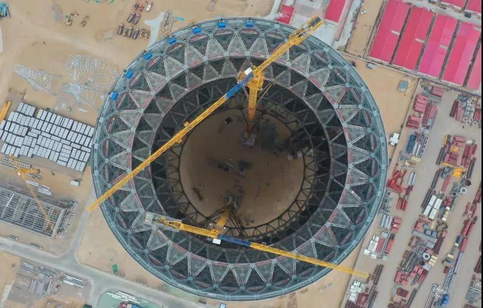 國家能源集團(tuán)國電電力上海廟公司位于內(nèi)蒙古自治區(qū)鄂爾多斯市鄂托克前旗上海廟能源化工基地,本期工程建設(shè)4×1000兆瓦超超臨界間接空冷火電機(jī)組,為國內(nèi)目前最大在建火電項目。該項目建設(shè)過程中,實現(xiàn)了國際同類型、同容量等級燃煤機(jī)組中機(jī)組熱效率、環(huán)保水平最高,供電煤耗、發(fā)電水耗指標(biāo)最低,并實現(xiàn)了多個國內(nèi)“首創(chuàng)”:即一鍵啟停(啟4停2)斷點(diǎn)最少的火電廠、首個百萬機(jī)組四機(jī)一控一次建成最大的火電廠、百萬間接空冷機(jī)組中回?zé)峒墧?shù)(9級)最多的火電廠、空冷機(jī)組中背壓最低(9千帕)的火力發(fā)電廠,且擁有世界首臺百萬等級鋼結(jié)構(gòu)間接空冷塔。