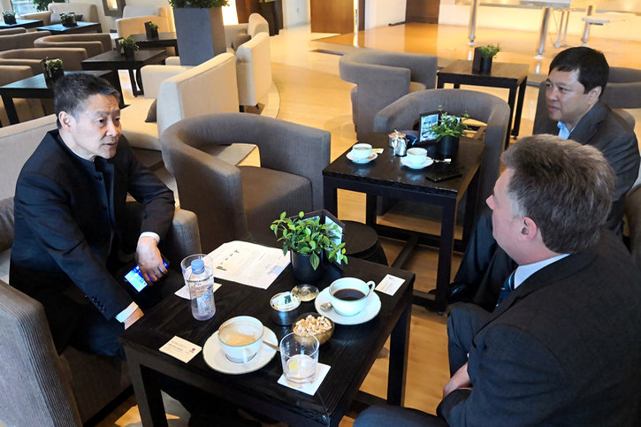11月4日上午,哈電集團董事長斯?jié)煞蛟谑讓弥袊鴩H進口博覽會開幕前夕,出席了由越南總理阮春福主持的中越企業(yè)家圓桌會議,分別與越南總理阮春福、香港新華集團董事長蔡冠深,就加強經(jīng)貿(mào)來往合作、能源領(lǐng)域建設(shè)等方面進行了交流。斯?jié)煞蜻€于11月4日下午,與香港中華電力商務(wù)總監(jiān)杜宜安和越南永興3項目公司總經(jīng)理Janne就相關(guān)合作事宜進行了座談交流。
