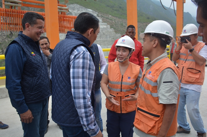 厄瓜多爾政府官員、公企協(xié)調(diào)公司主席 Edisson Garzón先生于2018年1月12日13時在CELEC公司總經(jīng)理Francisco Vergara先生、CELEC胡邦公司經(jīng)理 Fabricio Zambrano先生陪同下,出席了業(yè)主方舉辦的美納斯水電項目大壩蓄水儀式并發(fā)表講話,還到美納斯水電項目現(xiàn)場參觀考察。