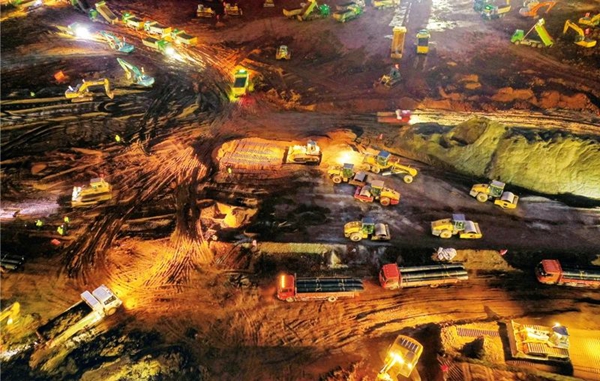 在抗擊新冠肺炎疫情過(guò)程中,國(guó)資國(guó)企聞令而動(dòng)、勇挑重?fù)?dān),主動(dòng)服務(wù)國(guó)家防疫大局,在黨和人民最需要的時(shí)候挺身而出、不辱使命。圖為2020年1月26日,在武漢火神山醫(yī)院建設(shè)現(xiàn)場(chǎng)的中建三局施工人員挑燈夜戰(zhàn),實(shí)行24小時(shí)不間斷作業(yè)。國(guó)務(wù)院國(guó)資委供圖 鄧紅武/攝