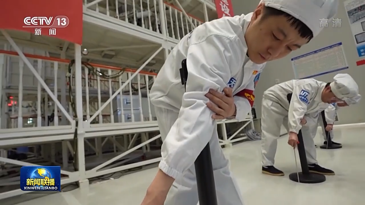 航天科技集團(tuán)五院總環(huán)部神舟飛船總裝班組組長 張舸:要確保設(shè)備安裝平面與這個(gè)設(shè)備操作桿是一個(gè)垂直狀態(tài),也就是90度,完全90度的狀態(tài),才能夠確保它能很精準(zhǔn)地插入到孔位。