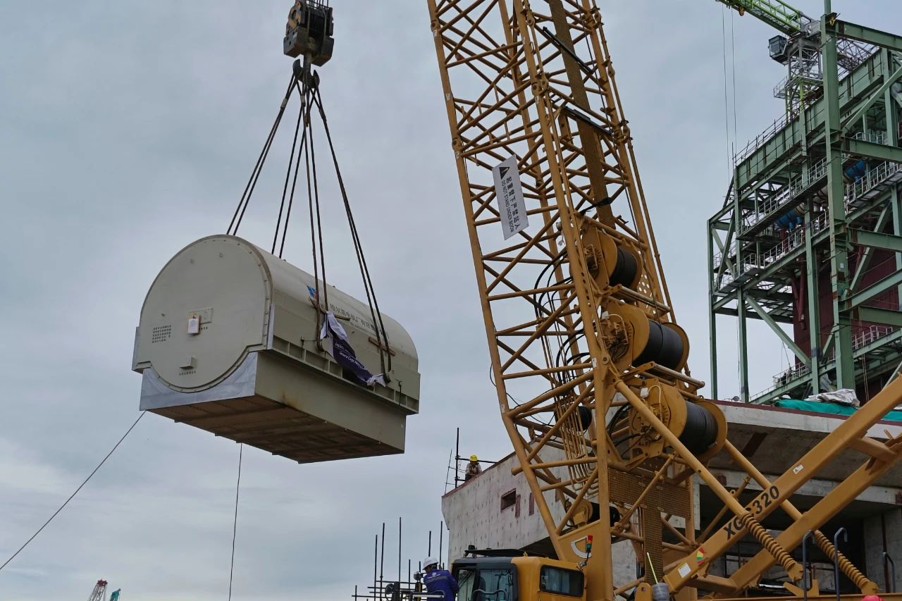 當(dāng)?shù)貢r(shí)間12月9日15時(shí)02分,項(xiàng)目一號(hào)機(jī)組汽輪發(fā)電機(jī)定子順利吊裝就位,標(biāo)志著汽輪發(fā)電機(jī)本體設(shè)備進(jìn)入全面安裝階段。