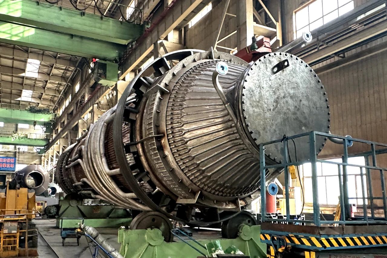 哈電集團(tuán)佳電股份操作者正在進(jìn)行電機(jī)轉(zhuǎn)子安裝作業(yè)