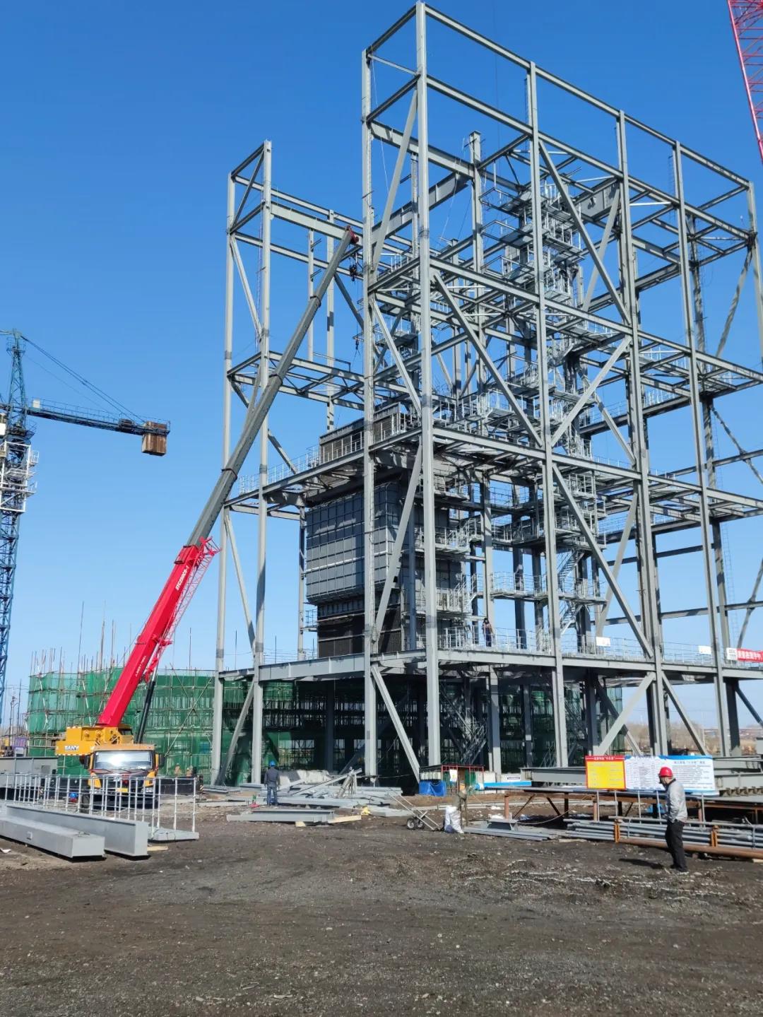 4月14日下午13點58分,由哈電集團國際公司總承包建設的德惠經開區(qū)1×40MW生物質熱電聯(lián)產項目鍋爐大板梁吊裝就位,標志項目現(xiàn)場鍋爐主體鋼結構到頂。