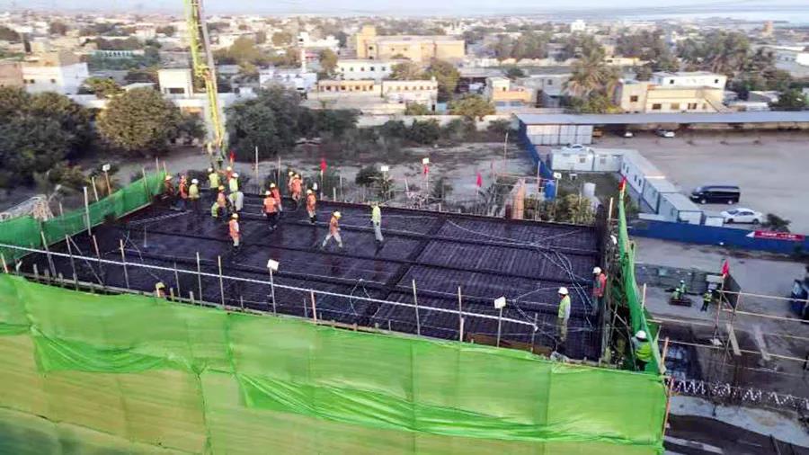 巴基斯坦濱佳勝三期項目廠外KTPS和Landhi變電站GIS室結(jié)構(gòu)頂板澆筑完成