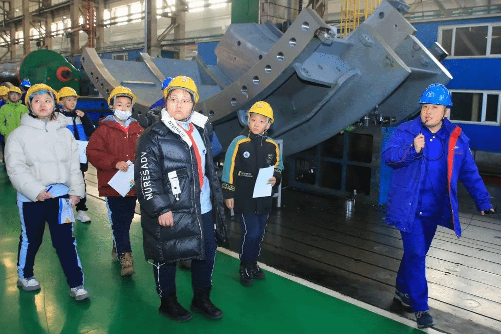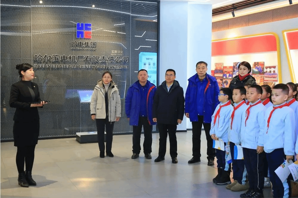 香坊區(qū)教育局、興華小學(xué)和電工小學(xué)的部分師生代表來到哈電電機(jī),近距離感受央企脊梁、國之重器的使命與擔(dān)當(dāng)。