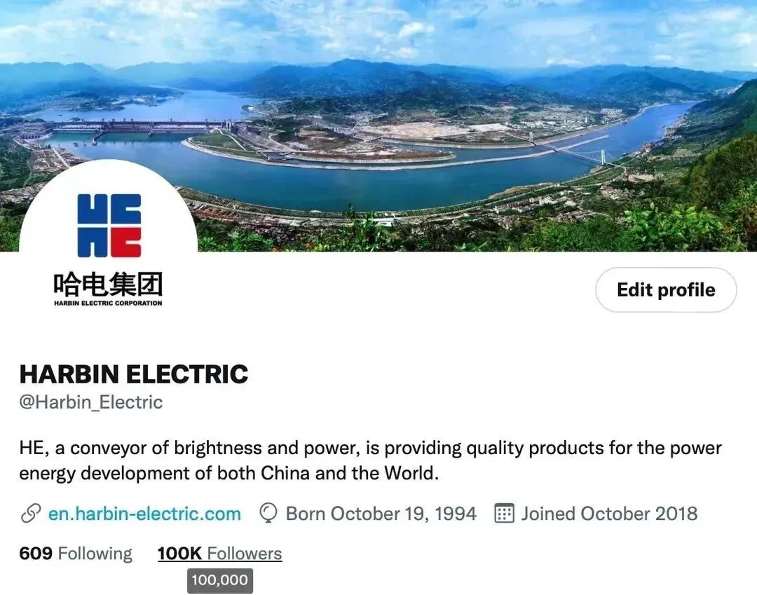 哈電集團積極開展“一起向未來”“共話新時代”“美美與共”“弘揚中華文化之美”等主題海外宣傳活動,提高外宣的覆蓋面和傳播效能,講好“一帶一路”哈電故事。2022年8月,哈電集團推特粉絲超過10萬人。