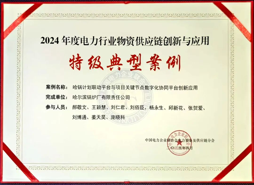 4月10日,2025年電力行業(yè)物資產(chǎn)供鏈創(chuàng)新轉(zhuǎn)型成果發(fā)布交流會在湖北省武漢市舉行。會議發(fā)布了“2024年度電力行業(yè)物資供應鏈創(chuàng)新與應用典型案例”名單,哈電鍋爐申報的“計劃聯(lián)動平臺與項目關(guān)鍵節(jié)點數(shù)字化協(xié)同平臺創(chuàng)新應用”項目獲評特級案例。