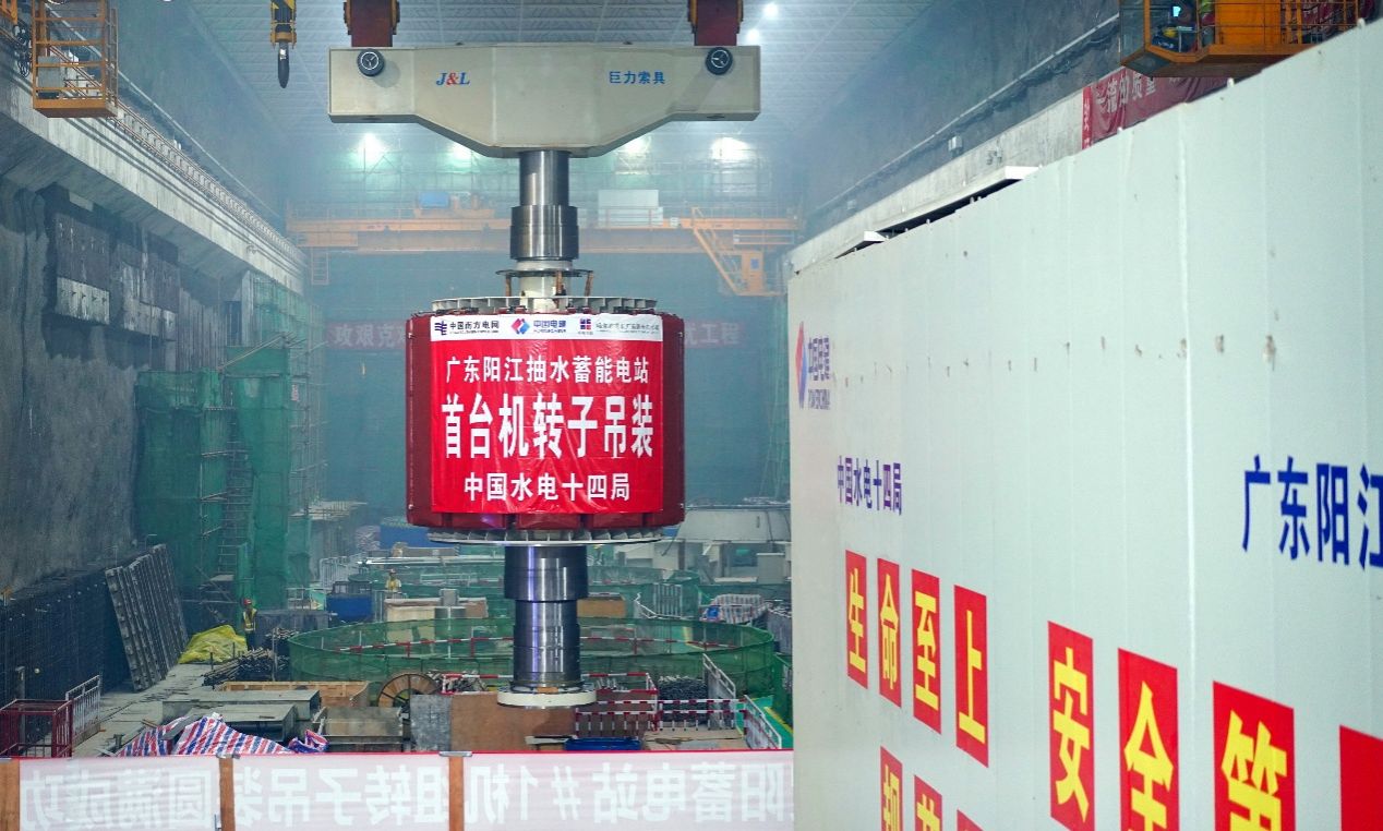 公司研制的陽江抽水蓄能項(xiàng)目首臺轉(zhuǎn)子成功吊裝